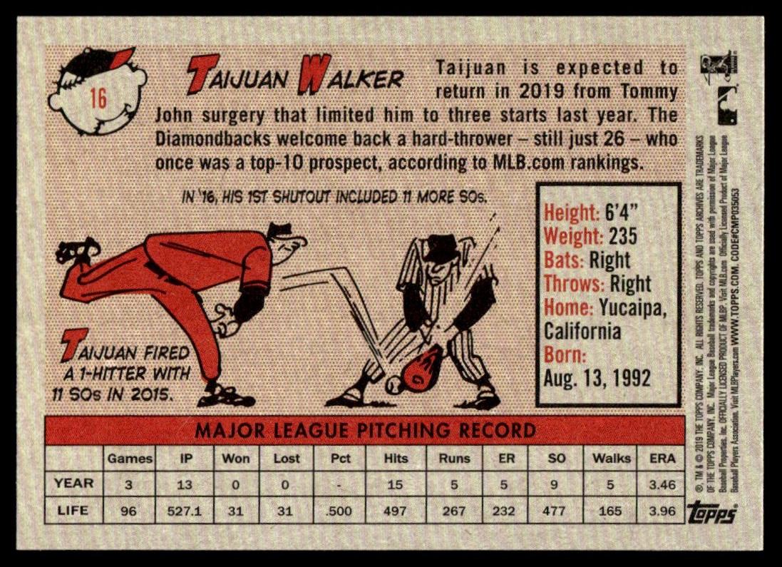 | 2019 Topps Archives TAIJUAN WALKER #16 Arizona Diamondbacks | ||||||||||||||||