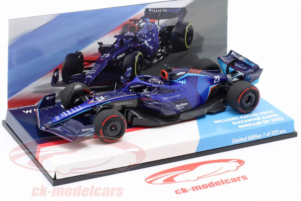 | Alexander Albon Williams FW44 #23 Bahrain GP Formel 1 2022 1:43 Minichamps | Alexander Albon Williams FW44 #23 Bahrain GP formula 1 2022 1:43 Minichamps |