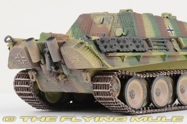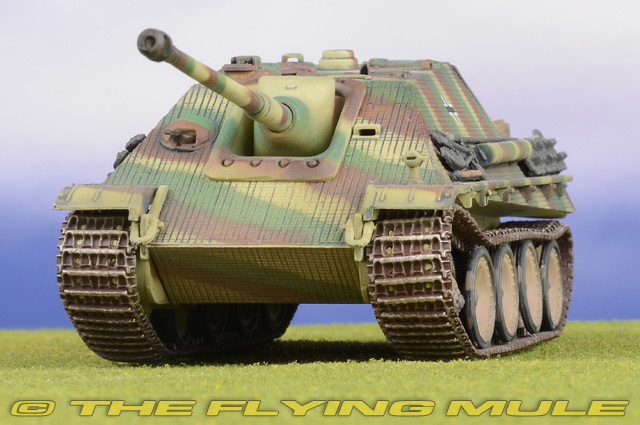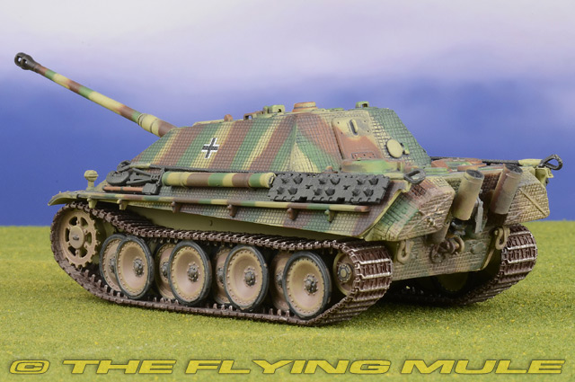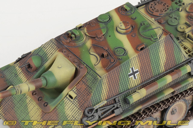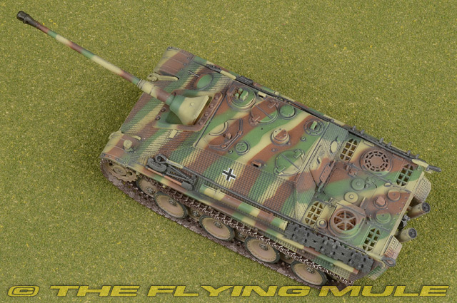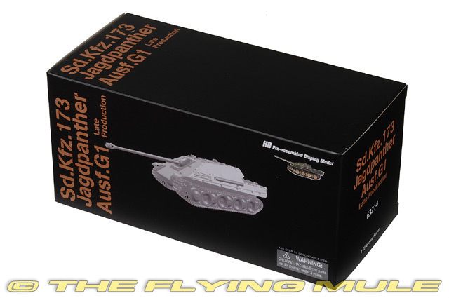 The initial designs for the Jagdpanther were created in the fall of 1942. The purpose was to mount an 88mm Pak 43 gun on a self propelled vehicle. The Panther chassis was chosen and the armored plating configuration was changed. Approximately 420 units were produced in 1944. MAN Sd.Kfz.173 JagdpantherFirst built in Nazi Germany in 1944, the Jagdpanther was a 46-ton tank destroyer powered by a 12 cylinder gasoline engine and operated by a five-man crew. The driver had a periscope and vision slots and additional periscopes were mounted on the roof of the superstructure for the commander and loader. Its "no turret" design was built on the chassis of the Panther tank. It carried an 88mm gun and was protected by heavy sloped armor. The outcome of this design was a low-silhouette extremely high quality vehicle with tremendous firepower that many historians believe to be the best tank destroyer of the war.© Copyright 2003-2026 The Flying Mule, Inc. Dragon Models 1:72 Armor Collector SeriesThe Dragon Models "1:72 Dragon Armor Collector Series" range presents highly-detailed, ready-made plastic models of military vehicles. Dragon Armor tanks require no glueing or painting. Each model is an instant display piece or diorama centerpiece straight from the box and is 100% true to scale... these don't look like model tanks, they look like tanks!. Color, camouflage and unit markings are carefully researched for Maximum authenticity, marking the difference between and authentic scale model tank and a "toy" tank.Dragon Models "1:72 Dragon Armor Collector Series" display model vehicles feature: