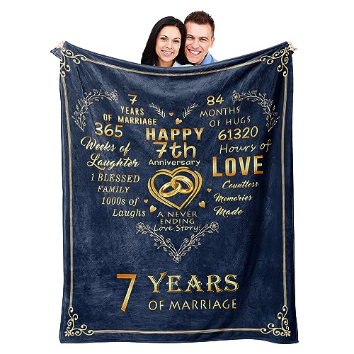 throw blanket to commemorate special events and precious moments on 7th wedding anniversary MATERIAL: 100% Polyester. Light weight blanket,soft and comfortable handing feeling. FEARTURES: Design: One-side Printing. Using heat dye sublimation technique, long-lasting effects. Wash: Easy to clean, washable in multiple ways, one side printing & without fear of fading colors or shrinkage. FUNCTION: Multifunction: It is suitable for four seasons, a great addition to your bedding collection - sofa, couch, bedroom, living room, guest room, kids room, RV, vacation house,or as a pets bed for dogs and cats. It is also perfect use for family outdoors activity, sports and beach.