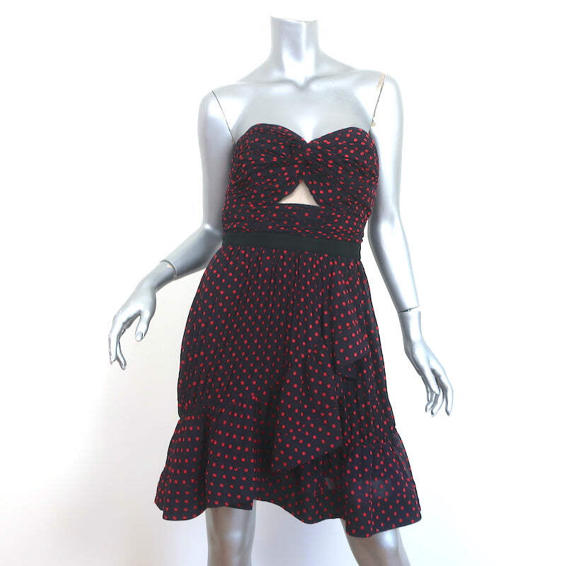 Self-Portrait Strapless Mini Dress Navy/Red Dot Print Georgette Size US 6 NEW