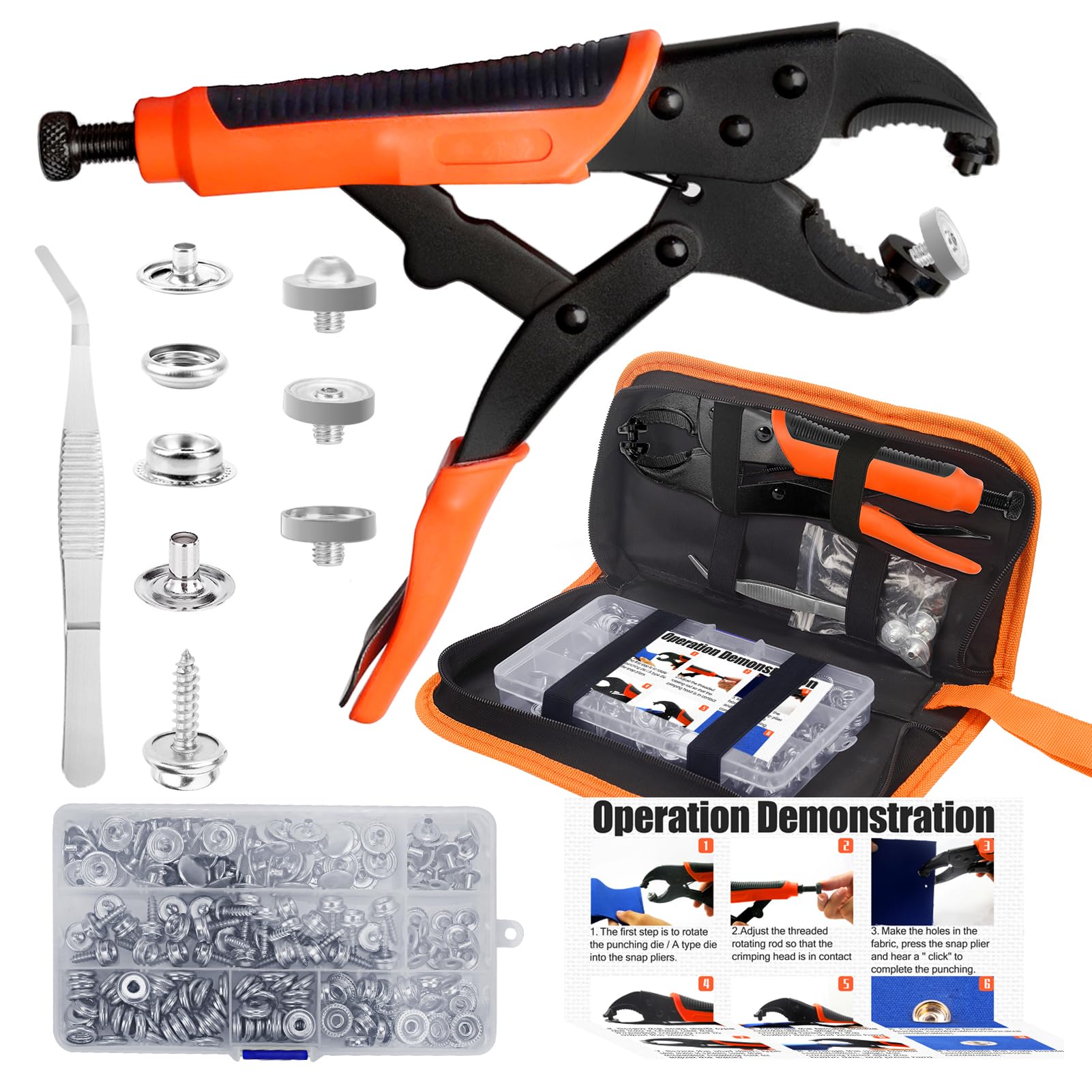 - 𝐌𝐚𝐫𝐢𝐧𝐞 𝐆𝐫𝐚𝐝𝐞 𝐌𝐚𝐭𝐞𝐫𝐢𝐚𝐥𝐬: This marine snap kit is typically constructed from sturdy metal, ensuring it can withstand high levels of usage and pressure without deforming or sustaining damage! Snap pliers body constructed of high-grade heat-treated alloy steel for maximum toughness and durability. All the metal snaps are made of brand new marine grade high-quality stainless steel, not easy to deformation, fit for various environments for long-time usage.