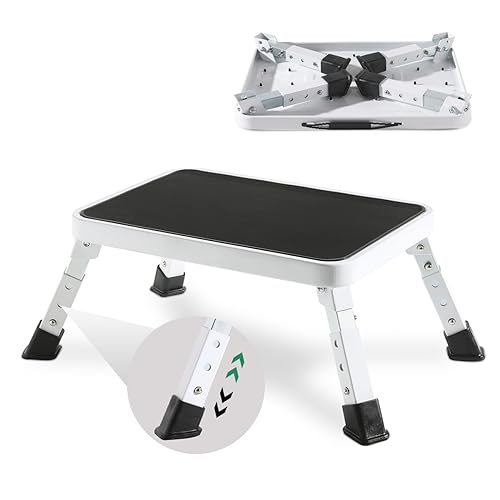 Adjustable Folding One Step Stools for Adults, Heavy Duty Metal Step Stool for Kids/Seniors, Foldable Camper/RV Step Stool, Portable Small Stepping Stool for College Dorm Bed/Kitchen/Car by