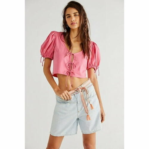 Kitty Puff Sleeve Crop Top In Velvet Rose