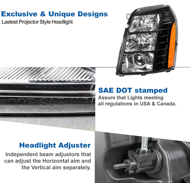 | Fitment | Compatible with 2007-2014 Cadillac Escalade Compatible with 2007-2014 Cadillac Escalade ESV Compatible with 2007-2013 Cadillac Escalade EXT *Fit models with factory HID headlights only **Do not fit models with factory LED headlights |