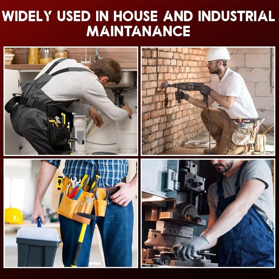 Tool bags on both sides provides you multiple pockets to organize your tools e.g., Nails, Wire strippers, tape, pliers, Hacksaws and Spanners