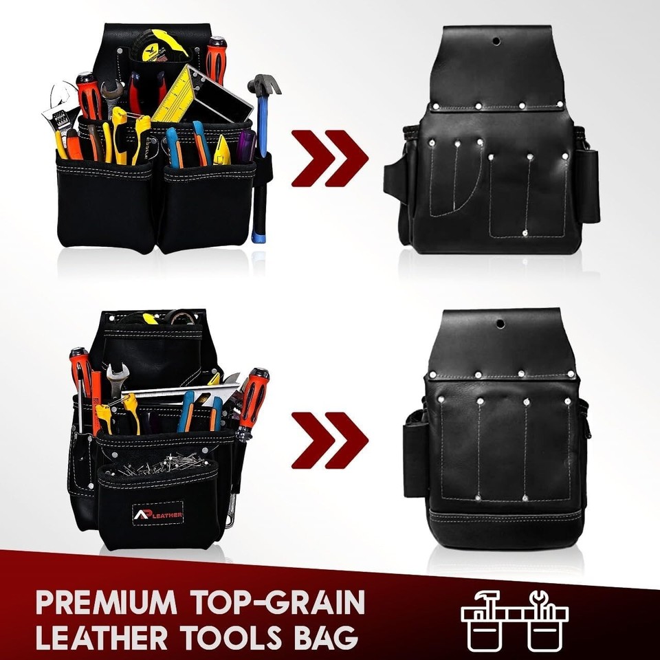 β MATARIAL : Made with π― Real Genuine Leather tool belt and top Grain Leather for maximum durabilityπππ. Riveted reinforcements for durability. Stainless Steel hammer hook holder !