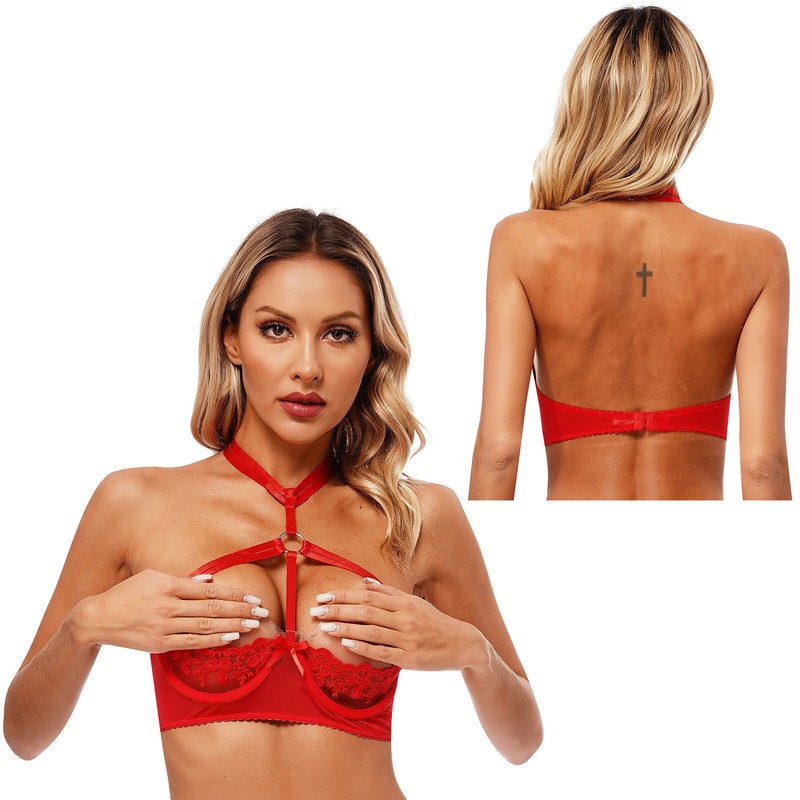 Integrated necklace naturally creates cutout on the front. You are very tempting in this bra, and your lover drools over you surely.