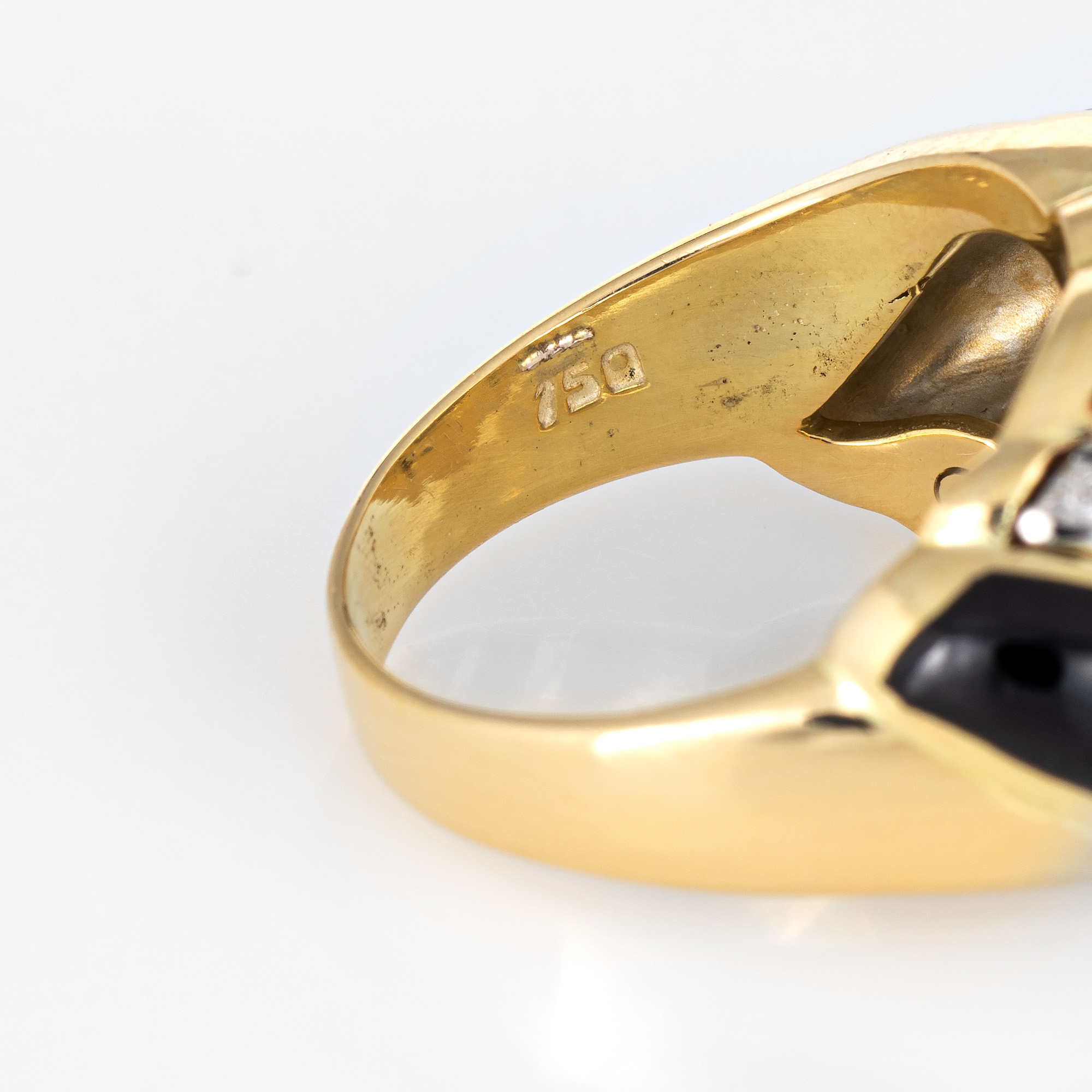 Metal & Hallmark: 18 karat yellow gold. The ring is hallmarked "750" for 18k gold.