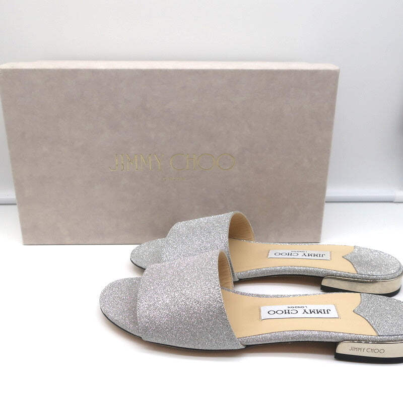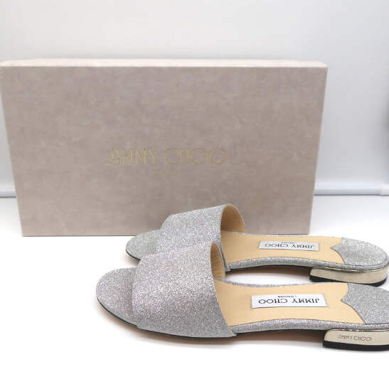 Jimmy Choo Joni Flat Slide Sandals Silver Glitter Size 37.5 NEW