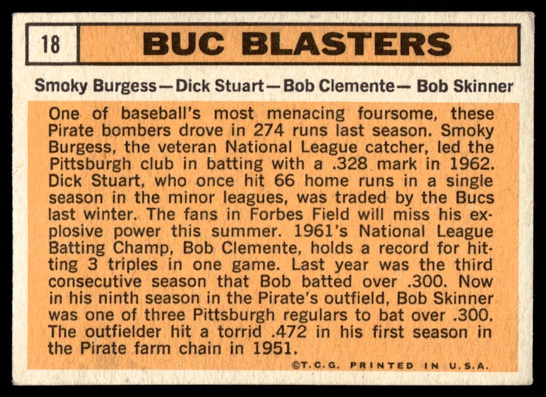 1963 Topps Buc Blasters Pittsburgh Pirates #18
