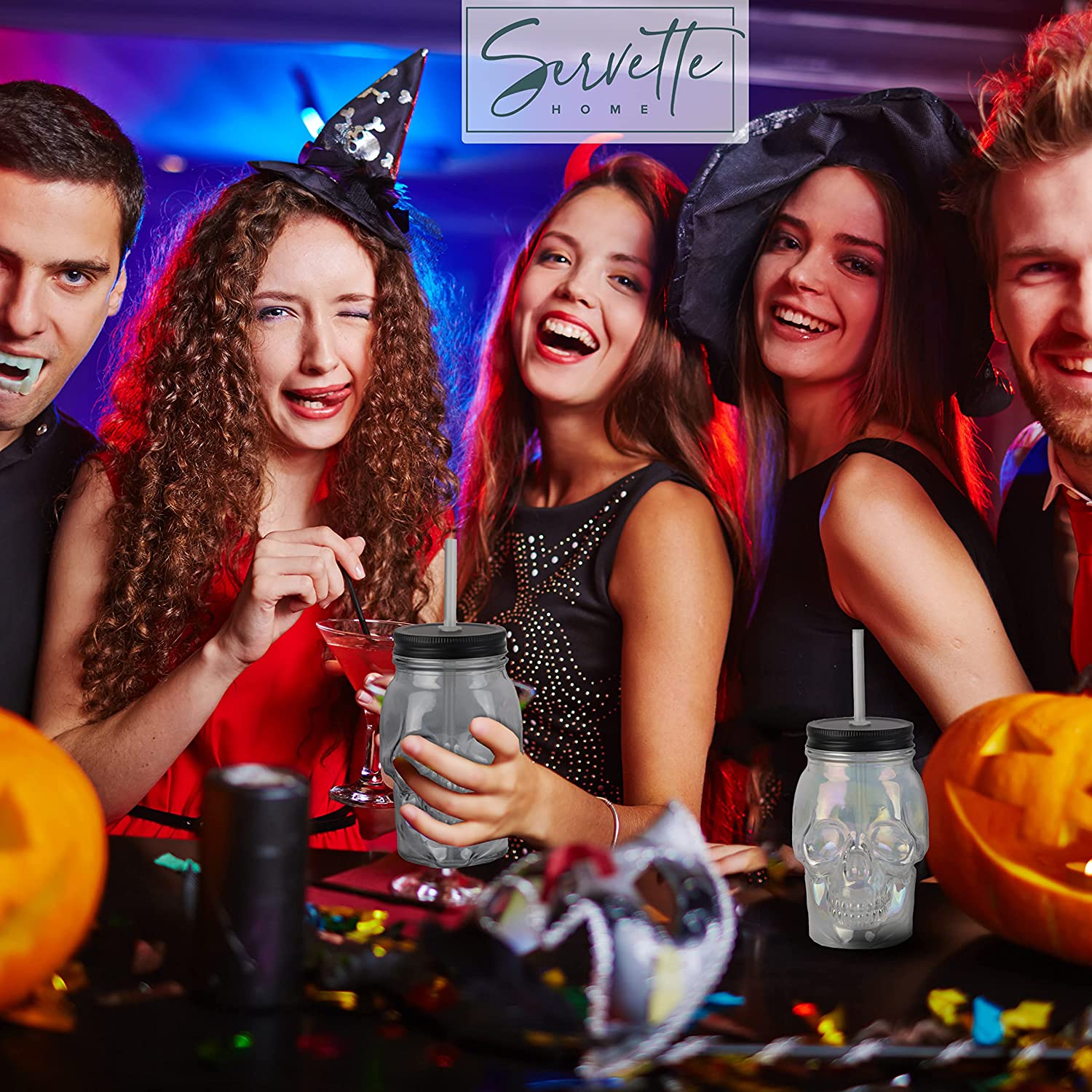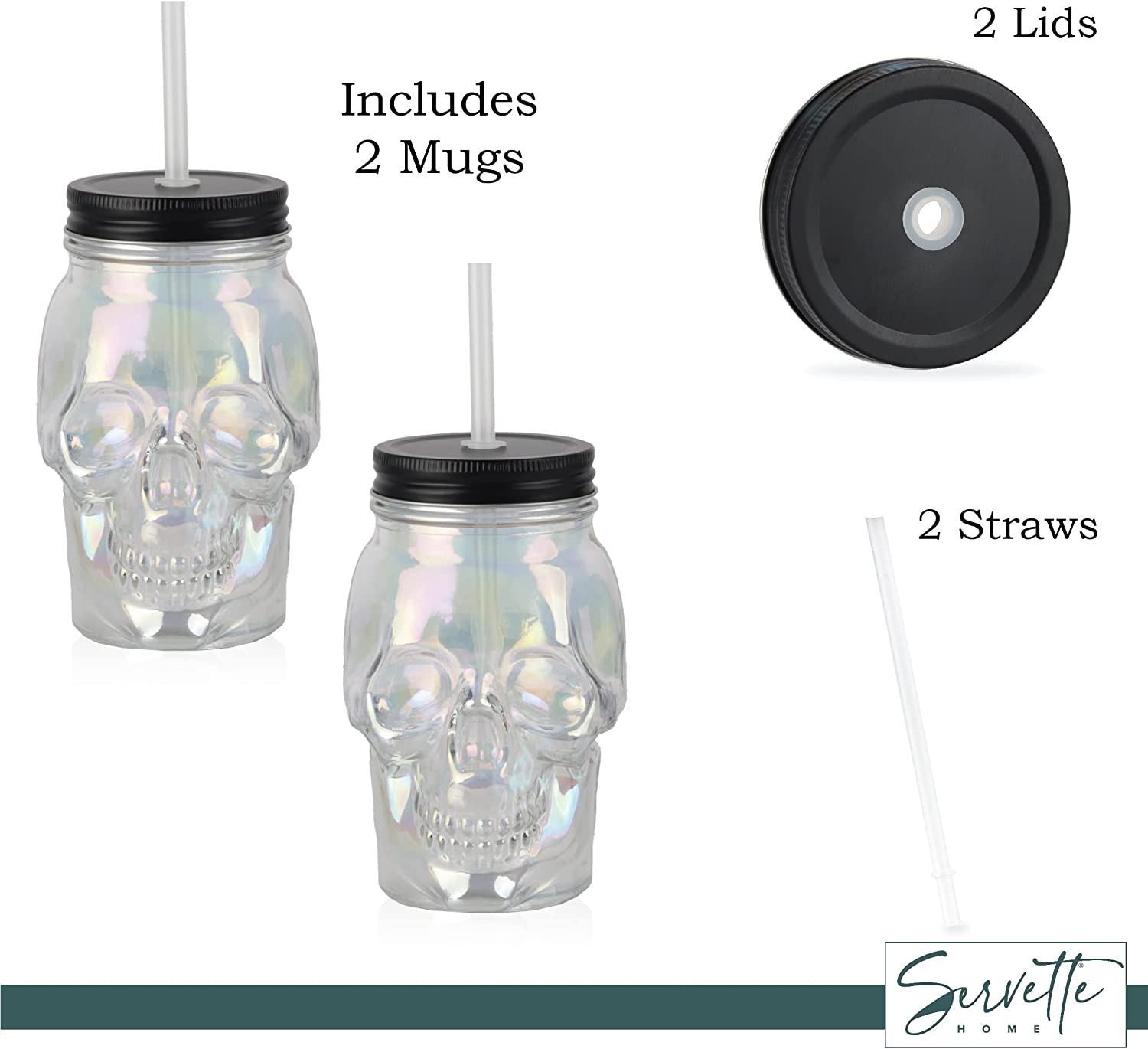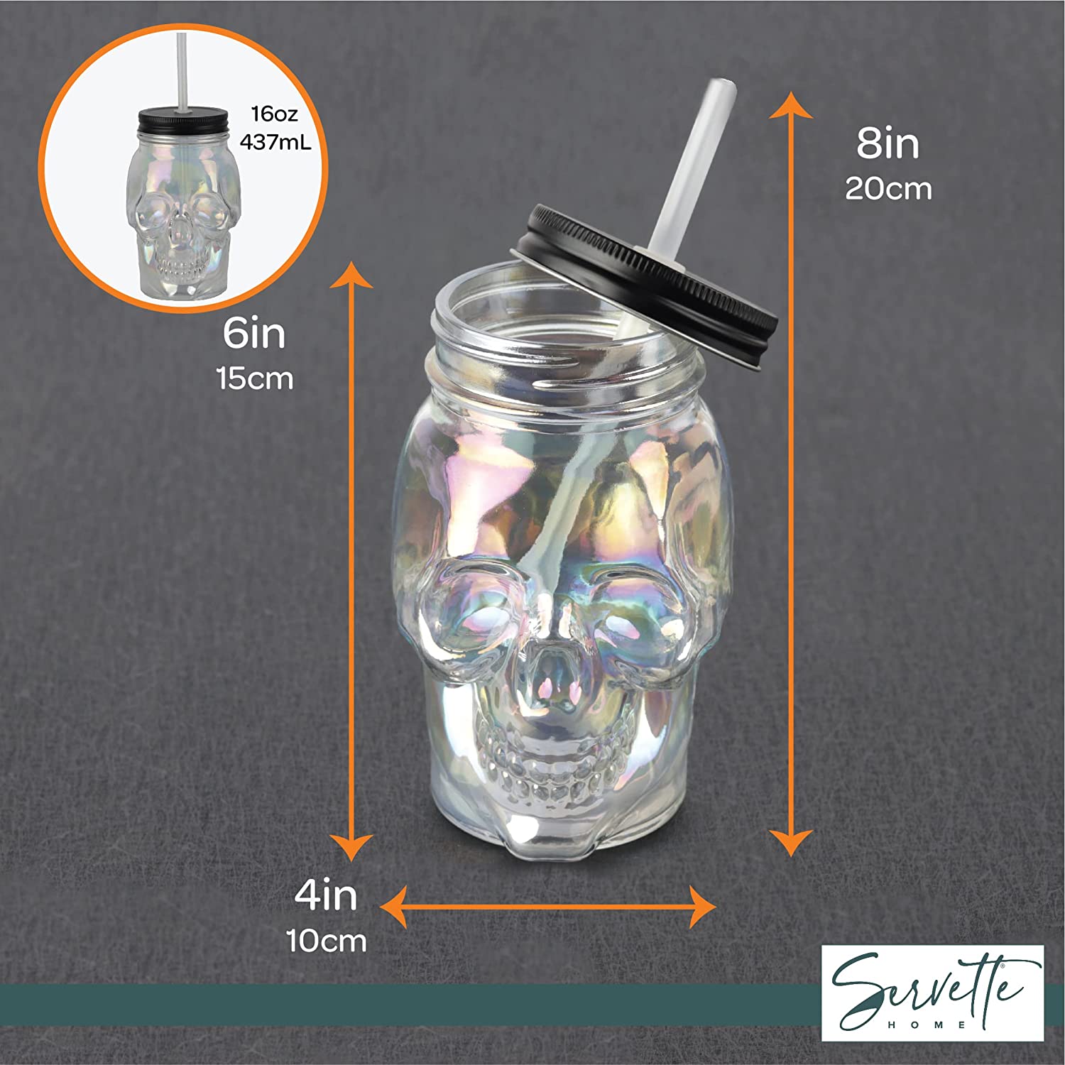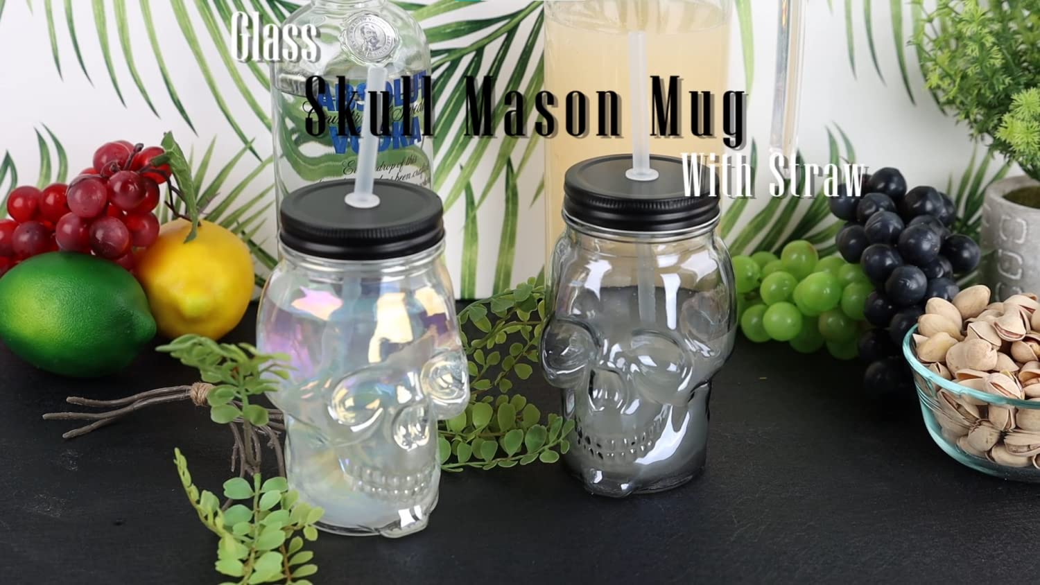 Reusable Boba cup. Great for Bubble Tea Cup, These mason jar lids have leakproof screw seal and wide mouth opening making it easy to refill. Glass mugs are easy cleaned with brush cleaner, and dishwasher safe. Drink your favorite beverage with a spooky touch! The fun skull design is perfect for Halloween parties or goth-themed parties, events, barbecue's, bachelorette parties, game night and other holidays..