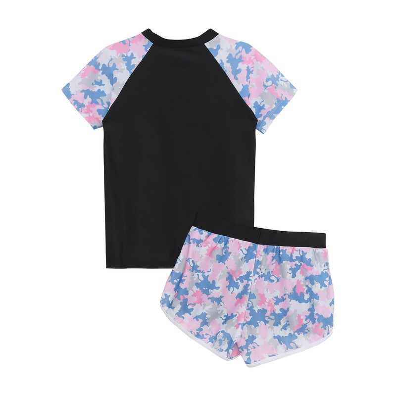 Camouflage print makes girls look active and chic. UPF50+ protects girls from sunburn and uv rays.
