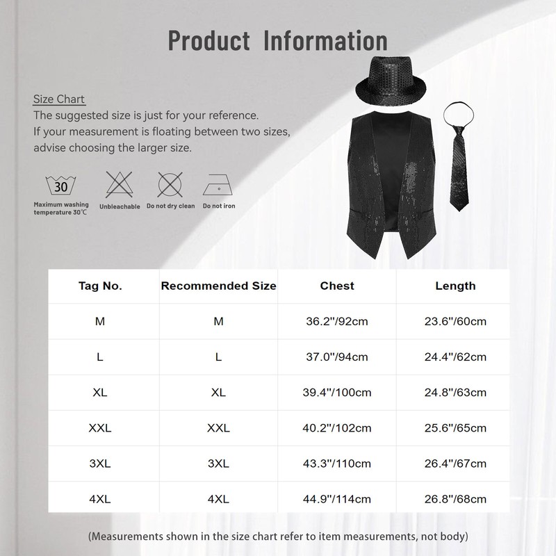 Set Include: 1x Waistcoat, 1Pc Hat, 1Pc Necktie