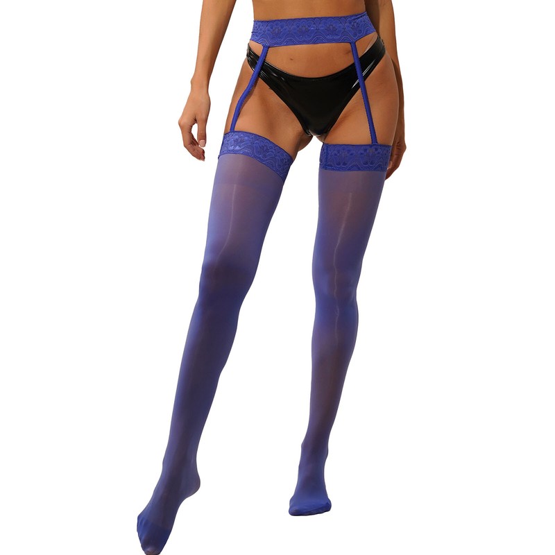 The see-through stockings are designed with floral lace garter belt, shows your legs slender and makes you more attractive.