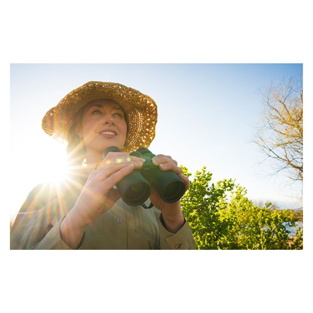 The PROSTAFF P3 8x42 binocular gathers more light across their wide field of view-377 feet at 1000 yards. This bright, wide view makes it easier to locate and track subjects, which appear 8x closer, in fading light. It's also more forgiving to handshake for a steady, clear view.