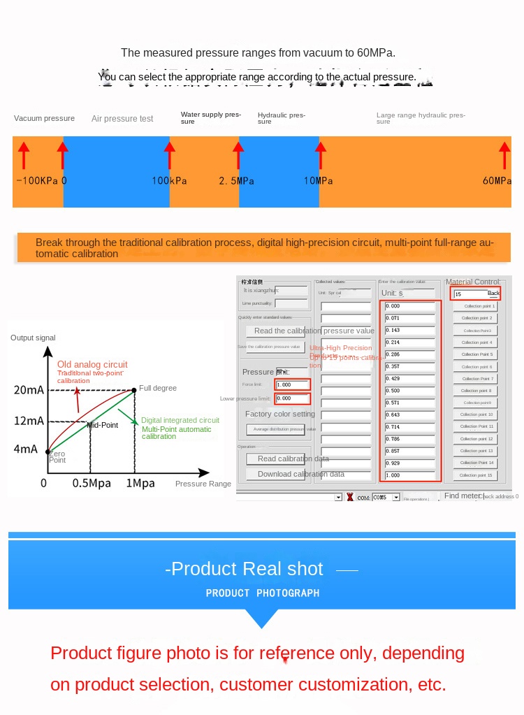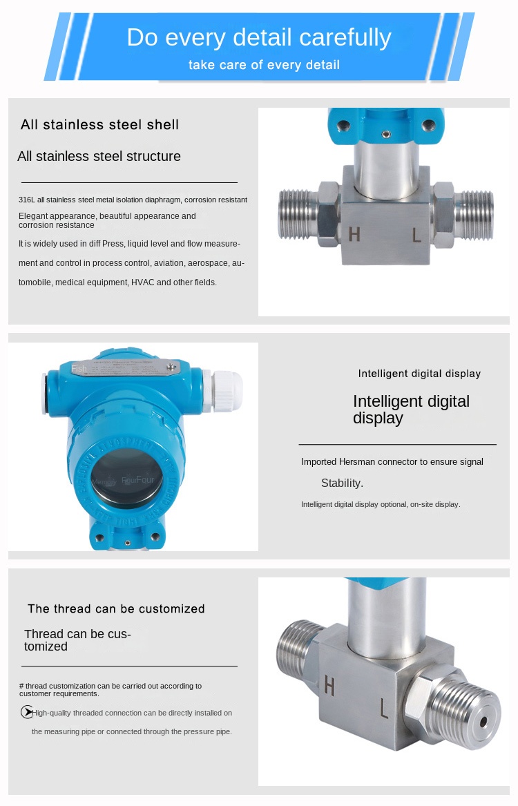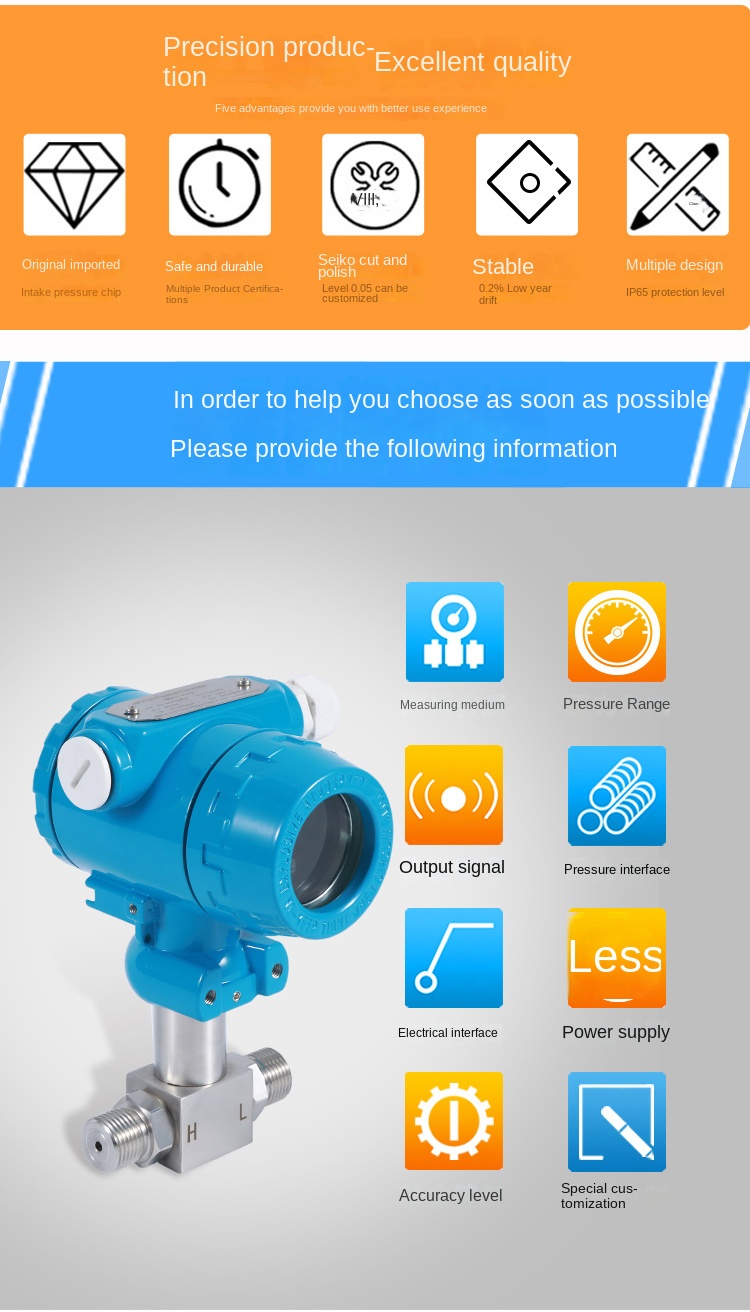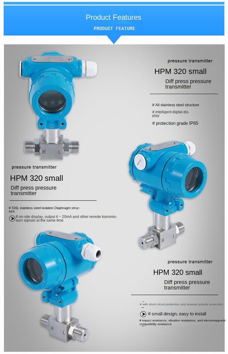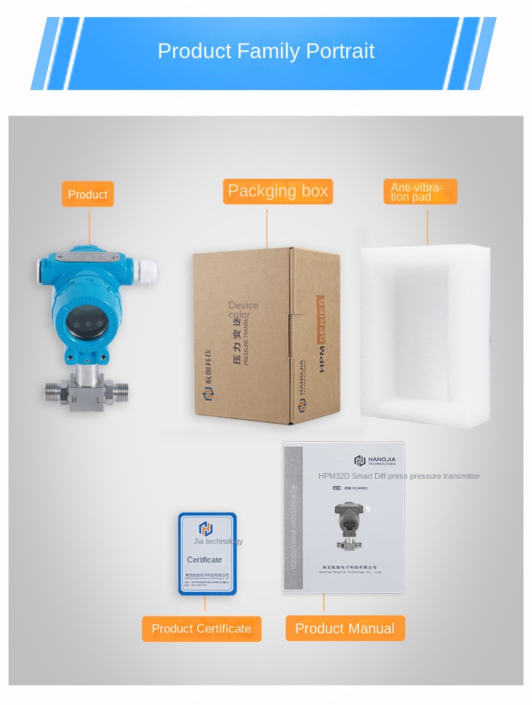 Differential pressure sensor intelligent digital display high-precision gas and liquid pressure transmitter differential pressure type 4 ~ 20mA/RS485 Packing:1PC Warranty period: 120 days