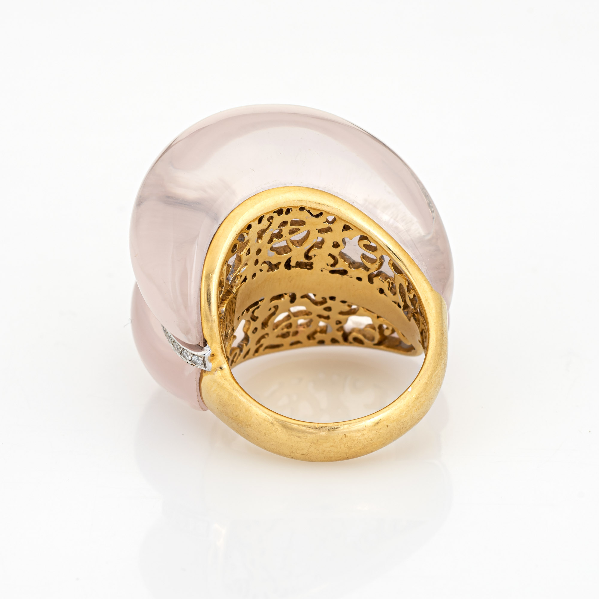 Contemporary Rose Quartz Diamond Ring Estate 18k Yellow Gold Limited Edition