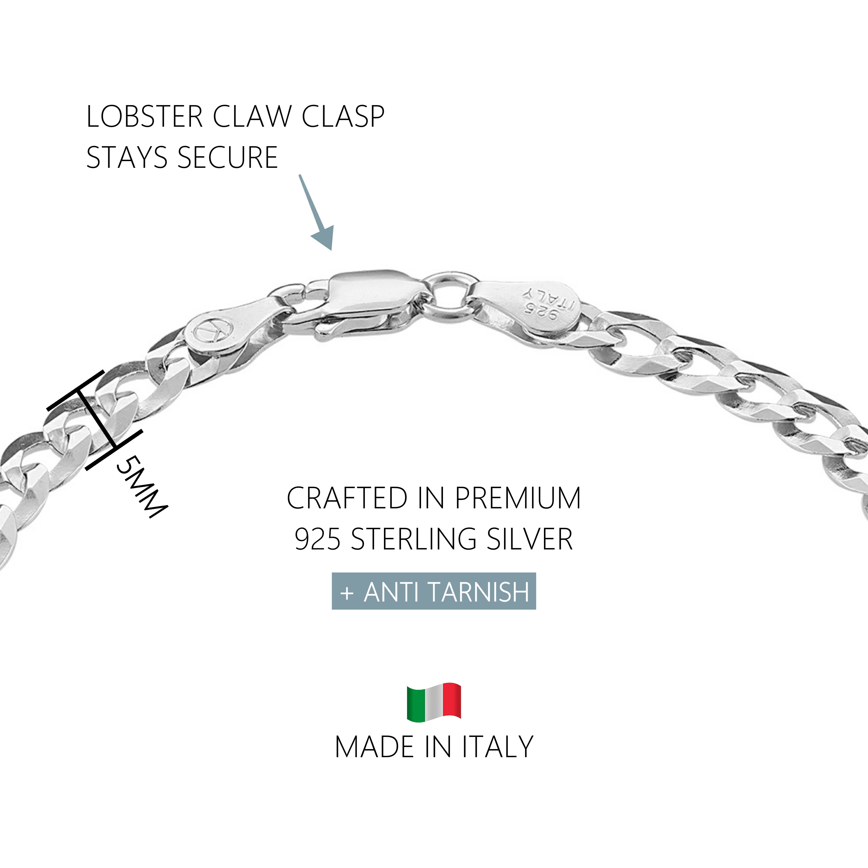 Introducing the KISPER Solid 925 Sterling Silver Italian 5mm Solid Diamond-Cut Cuban Link Curb Chain Bracelet, a timeless piece that exudes modern elegance and classic sophistication. Crafted with precision in Italy, this bracelet features flat diamond-cut, beveled links that offer a reflective shine, perfect for elevating your everyday style. Built to last, it boasts strength and durability, making it an ideal choice for daily wear. Made from 92.5% pure sterling silver, this bracelet is hypoallergenic and nickel-free, ensuring comfort for sensitive skin. With an anti-tarnish coating for added durability, it's available in various lengths and secured with a lobster-claw clasp and spring mechanism, providing both style and functionality.