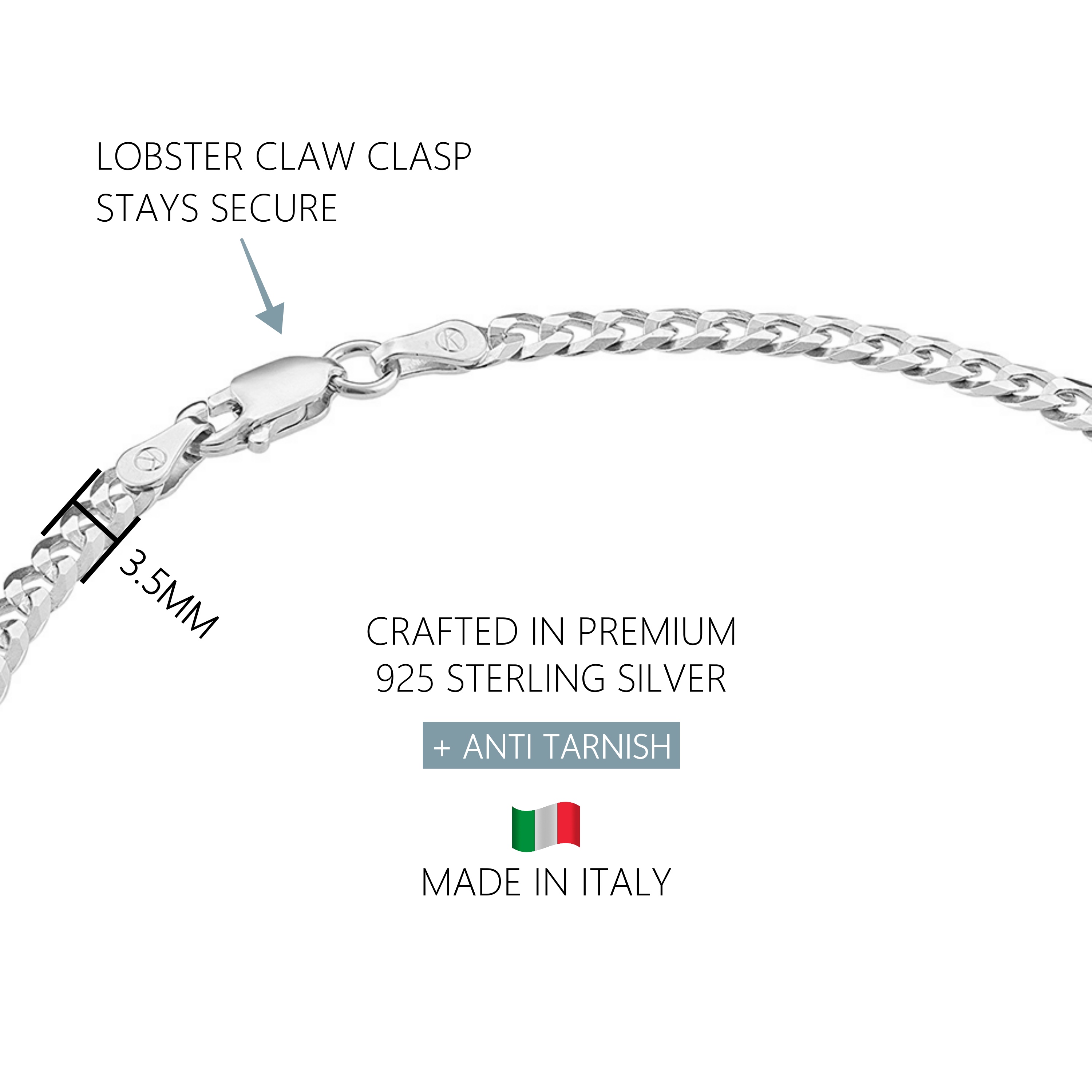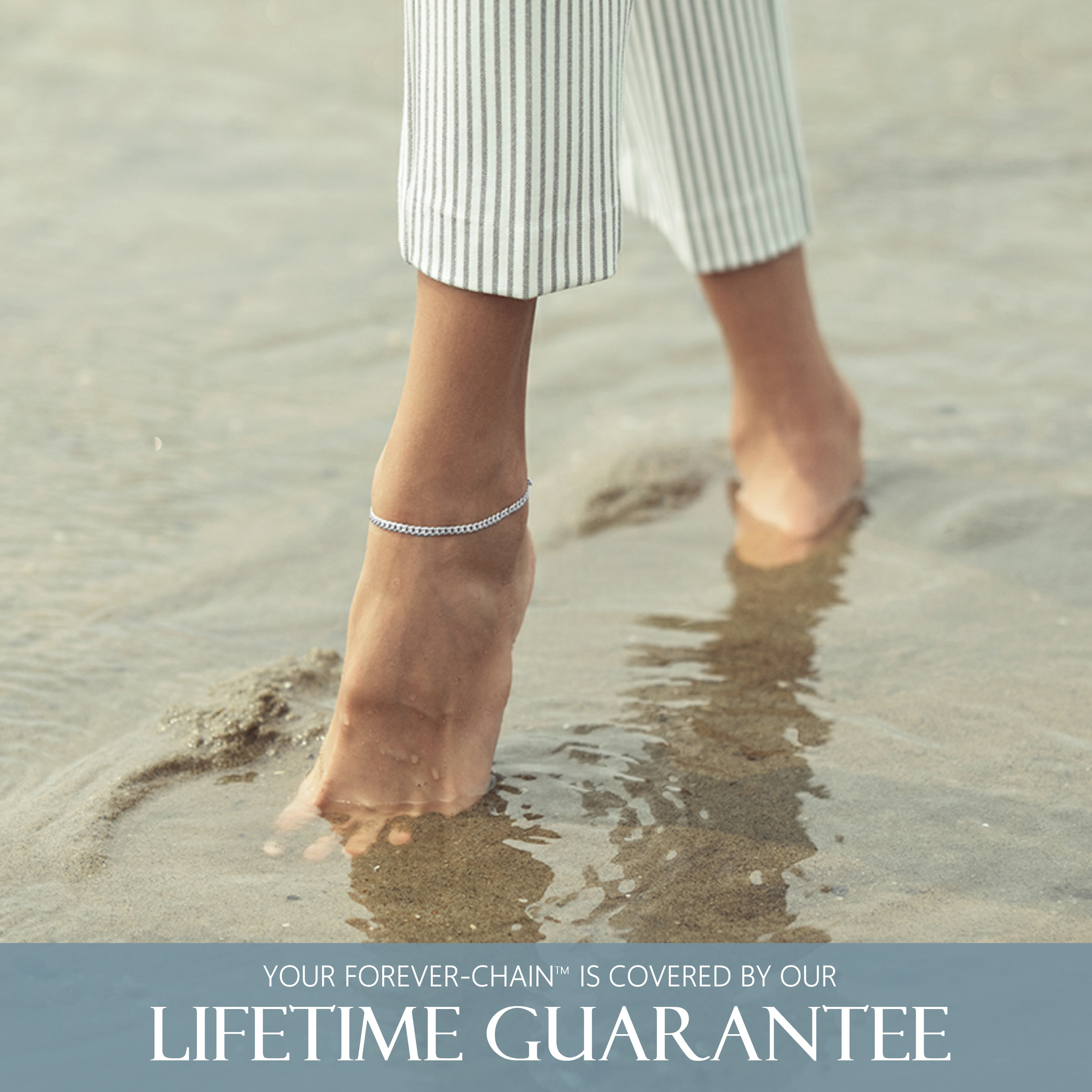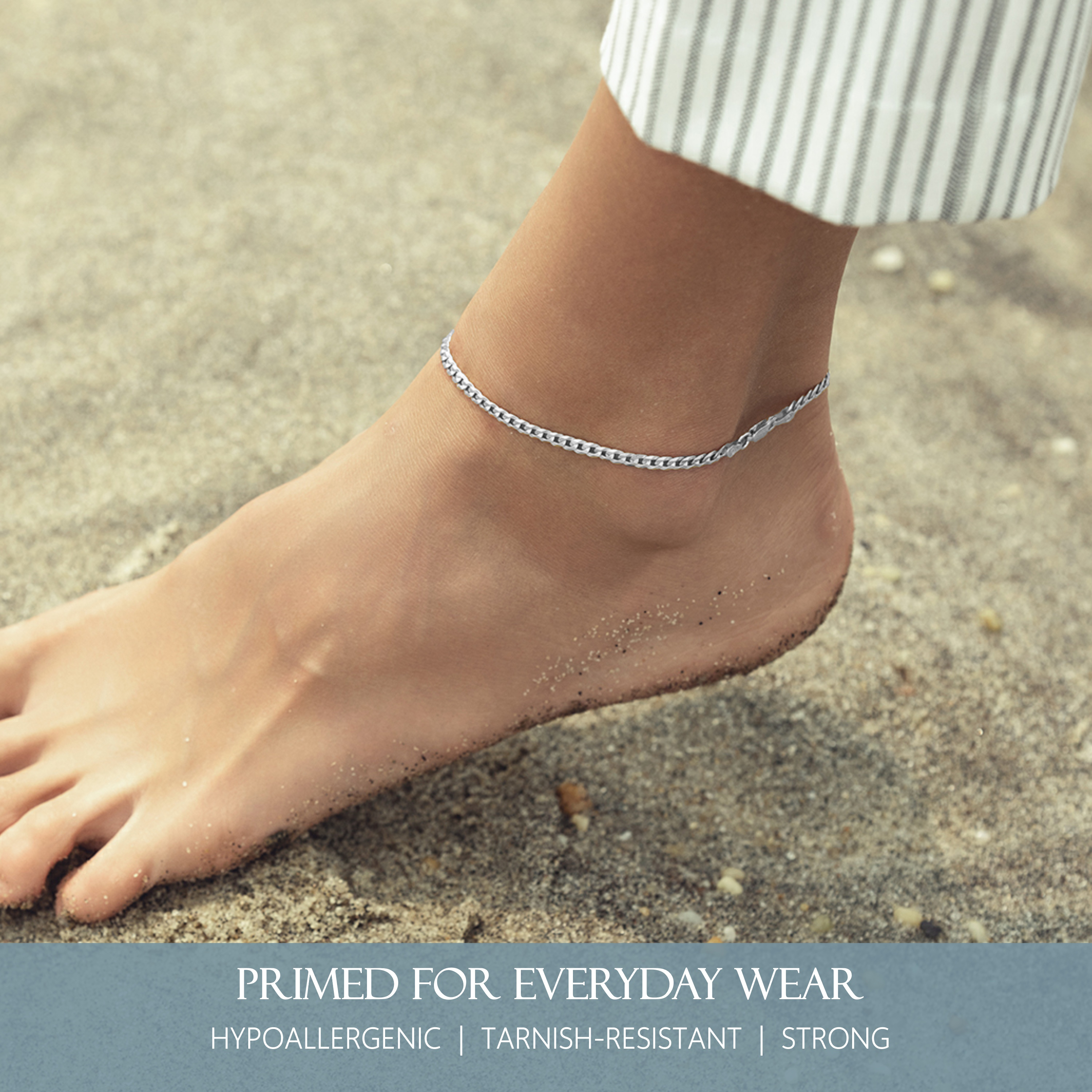 Elevate your style effortlessly with the KISPER Solid 925 Sterling Silver Italian 3.5mm Diamond-Cut Cuban Link Curb Chain Anklet Ankle Bracelet for Women. Crafted with versatility in mind, this anklet seamlessly transitions between casual and formal occasions, adding a touch of glamour to every outfit. Whether paired with denim for a chic daytime look, worn barefoot on sandy shores, or peeking out from under evening attire, this radiant piece makes a statement wherever you go. Made from 92.5% pure sterling silver, this anklet is nickel-free and hypoallergenic, making it suitable for sensitive skin. With its anti-tarnish coating and secure lobster-claw clasp, it offers both durability and ease of wear. Each piece is crafted in Italy with superior design excellence and quality craftsmanship, reflecting a rich history of creativity and passion. The perfect gift for any occasion, each purchase comes with a Kisper jewelry pouch, making it an ideal present for loved ones. Enjoy comfort and confidence in wearing your KISPER piece every day, backed by our famous lifetime guarantee.