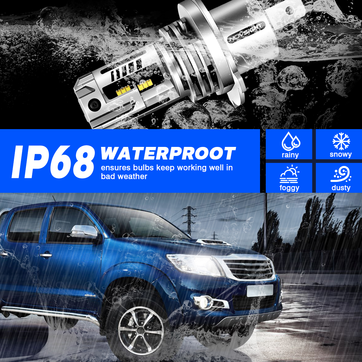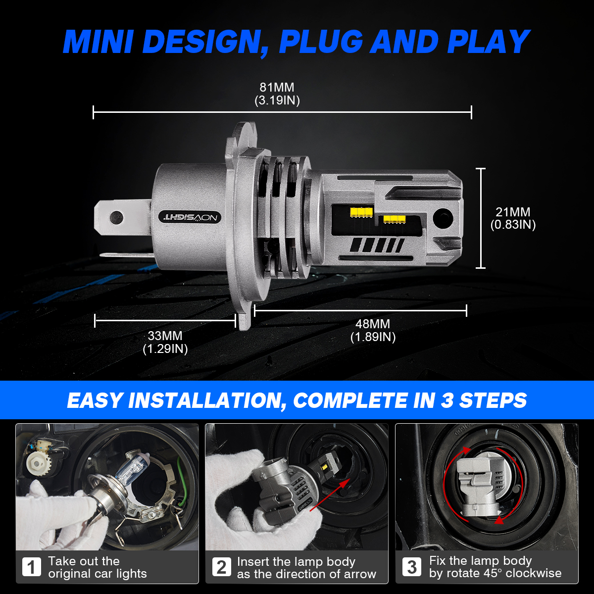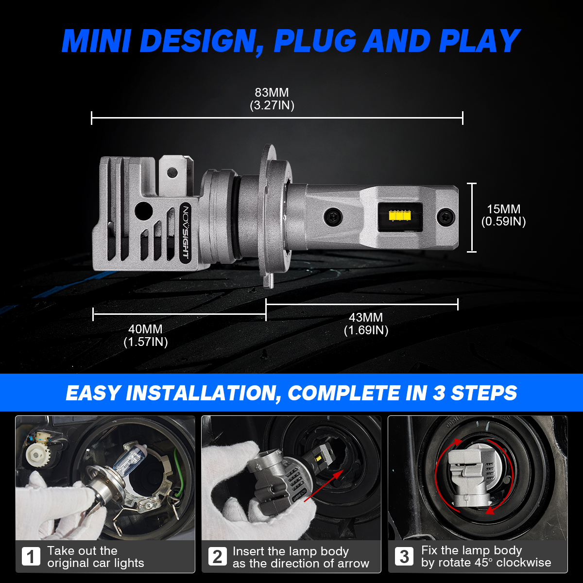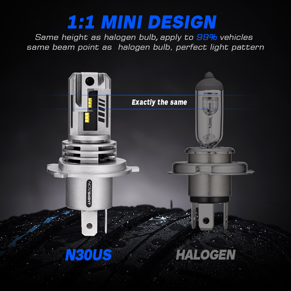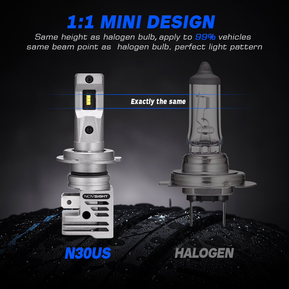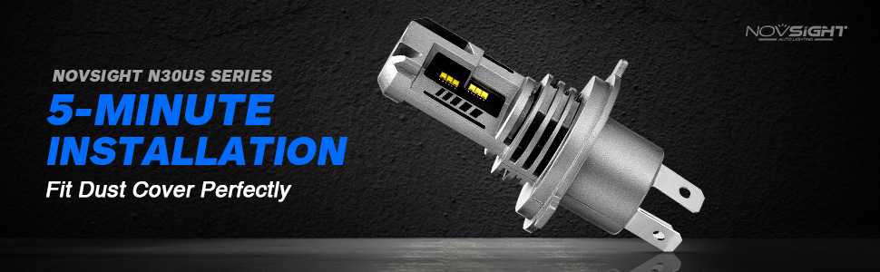 【5 MIN Easy Plug & Play】---NOVSIGHT N30 LED bulb is 1:1 same design as halogen, all in one designed without external driver and connector; non-polarity socket, connected just like halogen bulbs without any tools, no worry about external driver too big to install or connector break.
