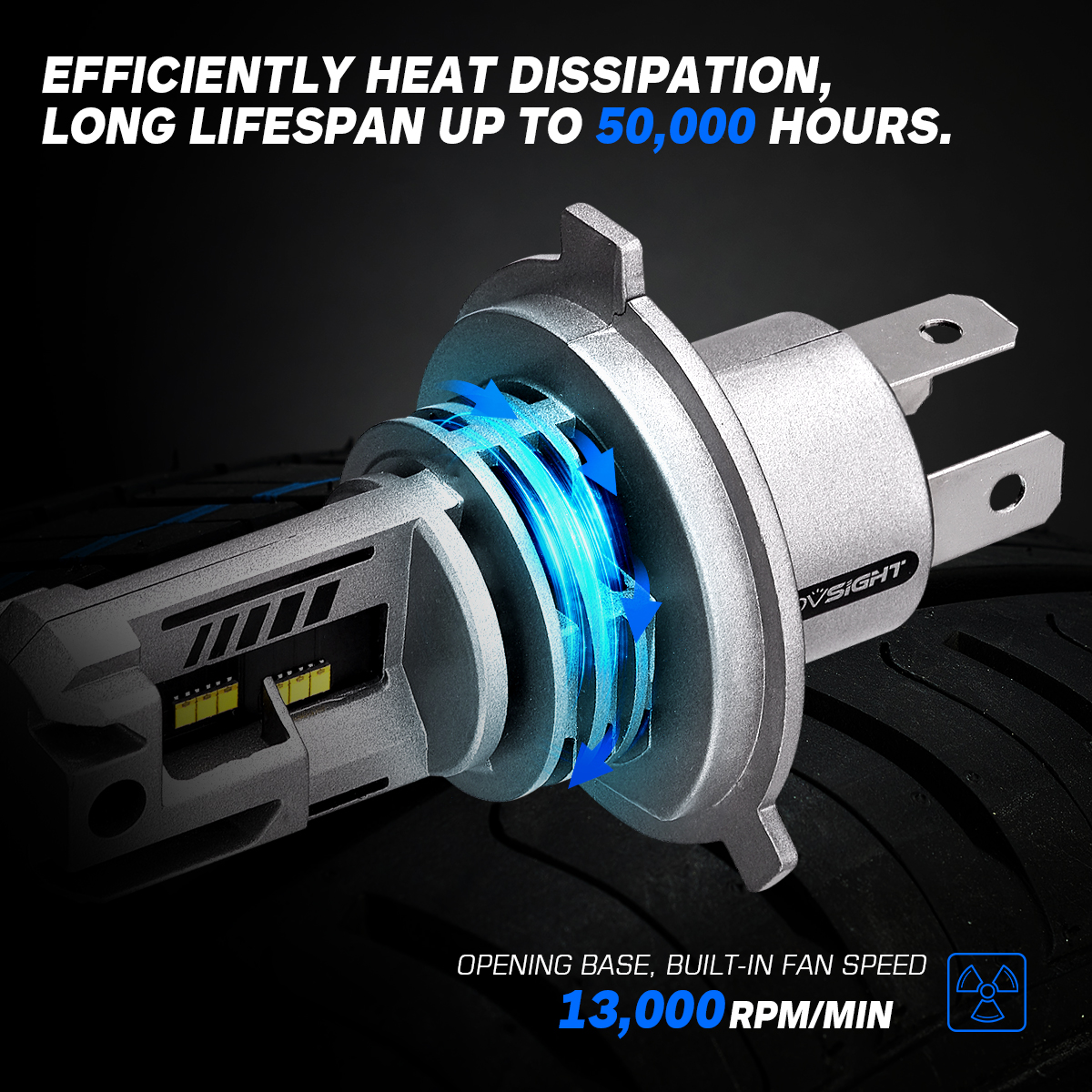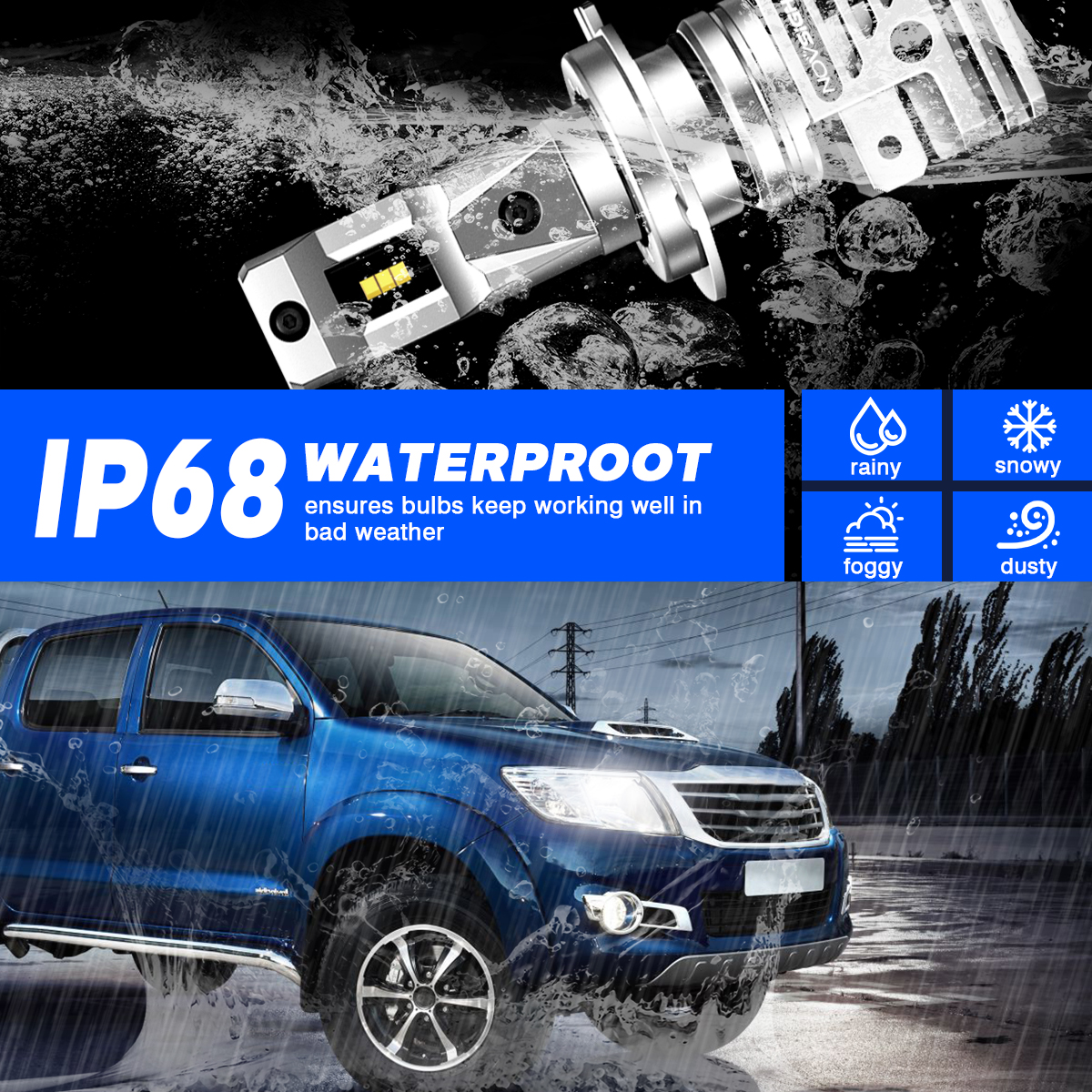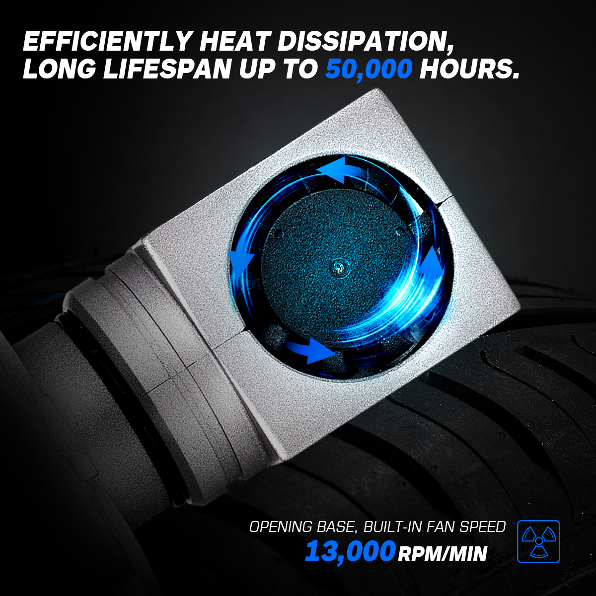 【20 Years Lifespan】---IP68 waterproof makes it work normally in extreme conditions such as fog, rain, snow and so on. Built-in high-speed powerful noiseless fan, aviation aluminum lamp body, effectively cooling led bulbs, avoid overheating damage, while still allowing you to enjoy a quiet and comfortable driving environment. More than 100,000 hours of service life, keep your light always running at optimal brightness