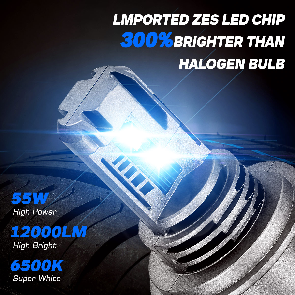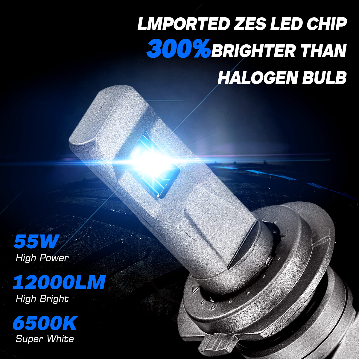 【300% Brighter Than Original Bulb】---Ditch your dim yellow halogens and make way for 6500K bright white one, 12000lm 55W high power gives you the best horizons on the road, 3 times brighter let you driving confident at night.