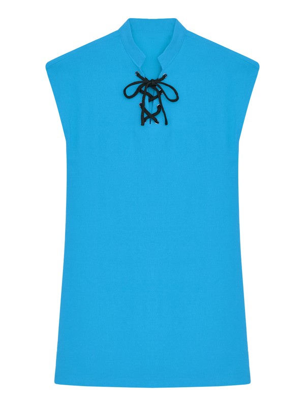 Designed with sleeveless, band collar, adjustable drawstring lace-up closure with cute ropes.