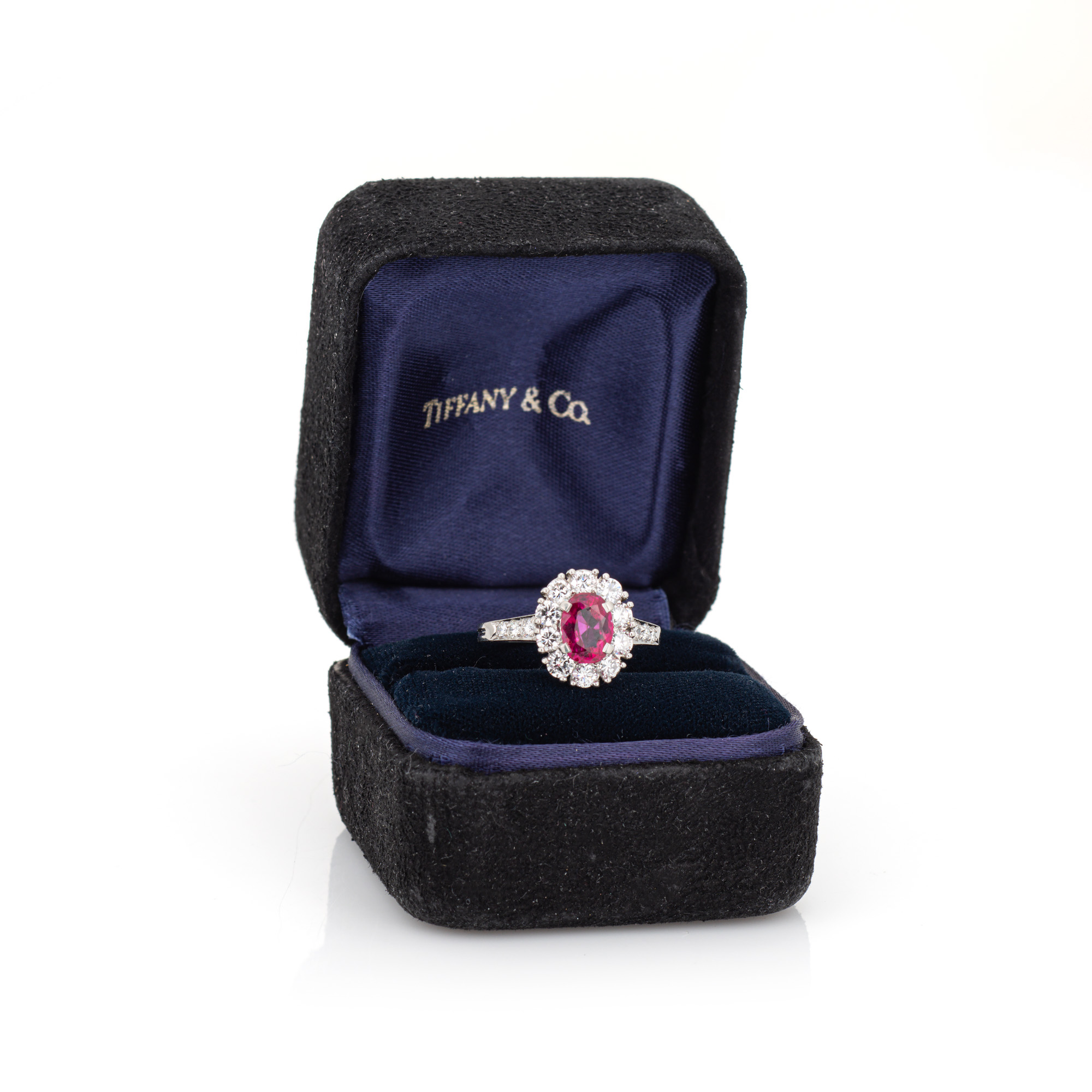 The vintage cluster ring is an irresistible classic, ideal worn as a cocktail ring or alternative gemstone engagement ring. The Burma ruby is absolutely stunning and glows in a rich vibrant red hue. The accenting diamonds shimmer with loads of sparkle and fire. The low rise ring (5mm - 0.19 inches) sits comfortably on the finger. Tiffany & Co box is included (see picture). Also included is a GIA certificate for the Ruby (report date: July 25, 2025).