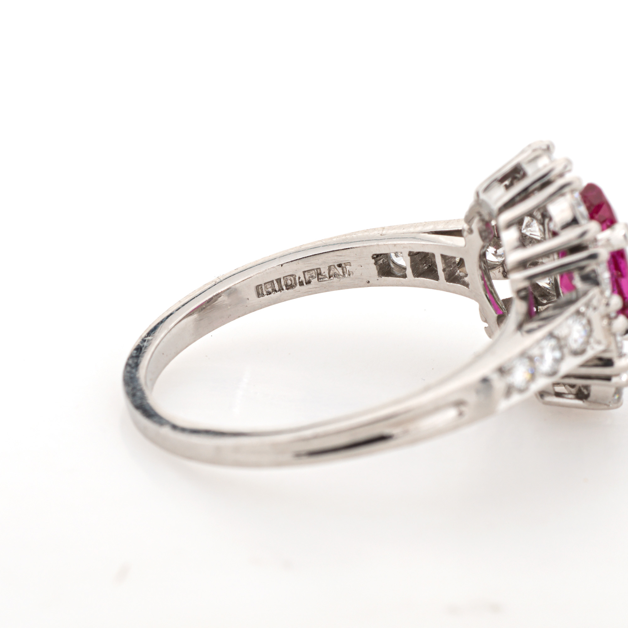 Vintage Tiffany & Co ruby & diamond cluster ring crafted in 900 platinum (circa 1960s).