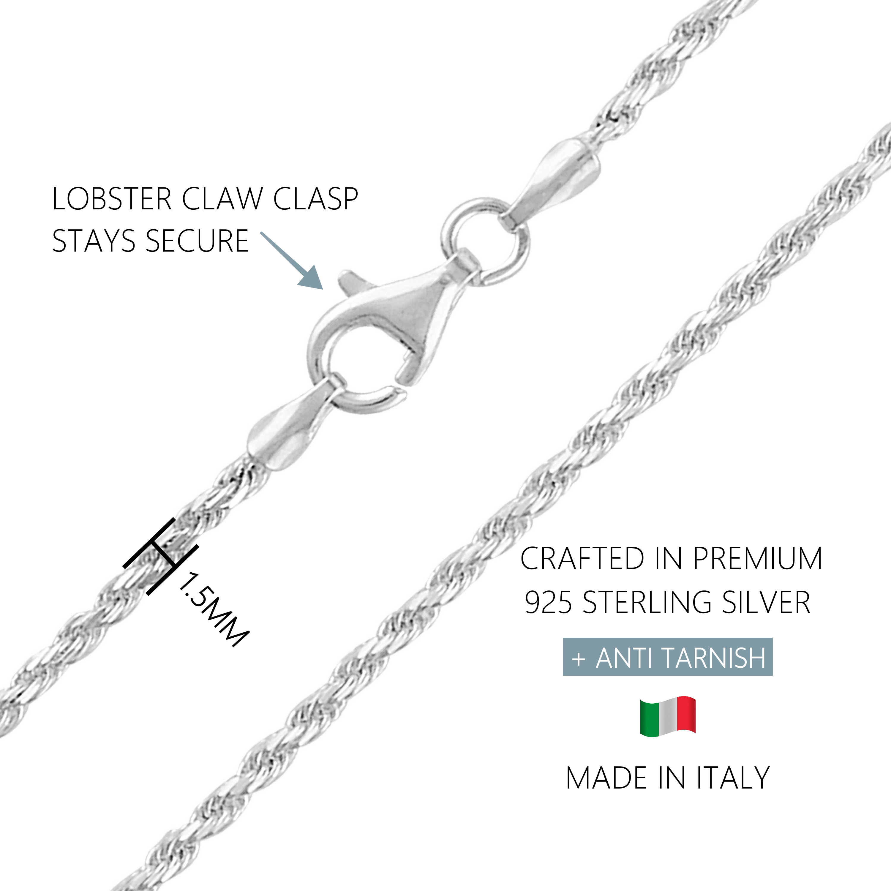 Discover sophistication and versatility with the KISPER Solid 925 Sterling Silver Italian 1.6mm Diamond-Cut Twisted Braided Rope Link Chain Necklace, a luxurious accessory suitable for both men and women. Made in Italy, this exquisite necklace features sparkling 925 sterling silver craftsmanship, ensuring a high-end look and feel. Its 1.6mm thickness adds a touch of understated elegance, making it the perfect choice for any setting or occasion. Whether worn alone or adorned with a pendant, this necklace effortlessly elevates any outfit. Crafted with quality in mind, it is hypoallergenic, nickel, and lead-free, with a tarnish-resistant rhodium plating for long-lasting wear. Available in a range of lengths from 16 inches to 30 inches, you can select the perfect size for your personal style, ideal for layering or wearing solo. Backed by KISPER's lifetime guarantee, this necklace promises joy and sophistication for years to come.