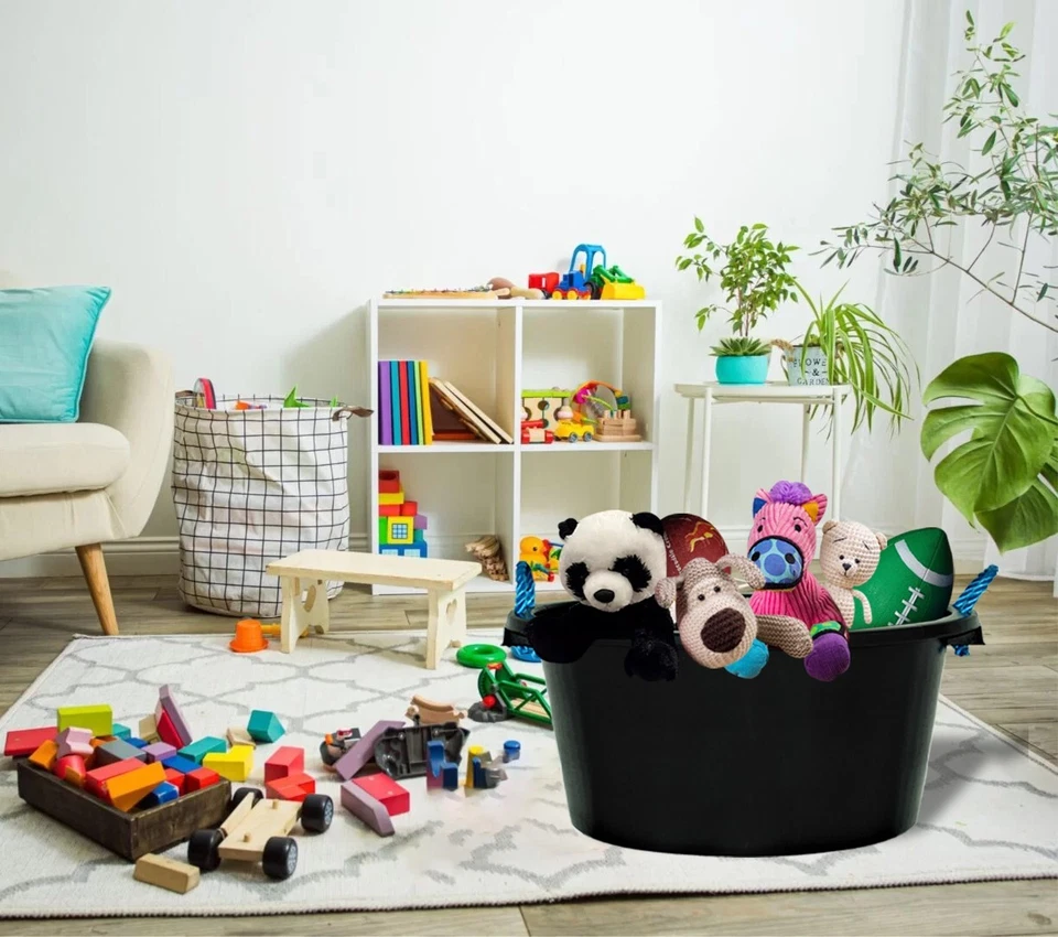 [Set of 4] 70L Black Builder's Muck Plastic Bucket with Rope Handle Water Storage Plaster Cement Mix - UK