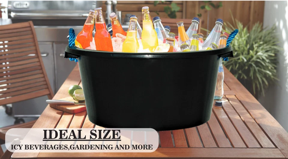 - The plastic bucket features two Strong Poly Rope Handles that allow this bucket to be easily transported.