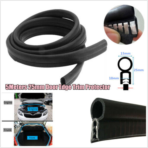 5M Car Door Edge Trim Protector Isolator Noise Rubber Seal Strip W/ Steel Sheet