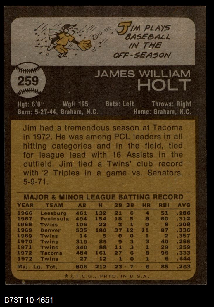 | 1973 Topps #259 Jim Holt | 3 - VG | Front | Back |
