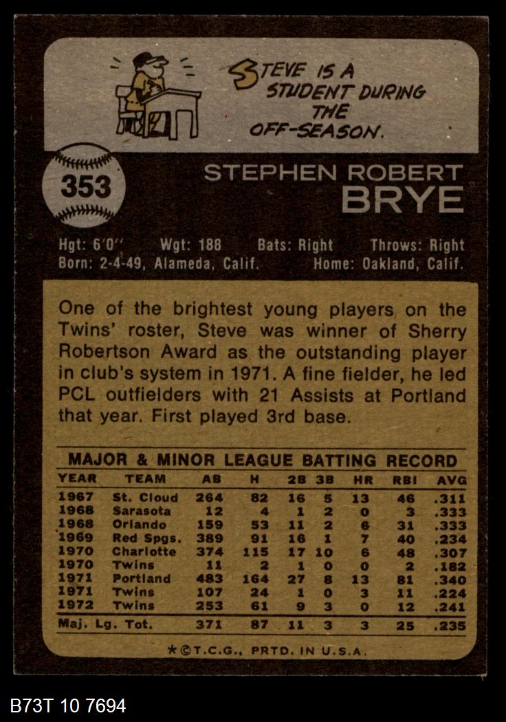 | 1973 Topps #353 Steve Brye | 5 - EX | Front | Back |