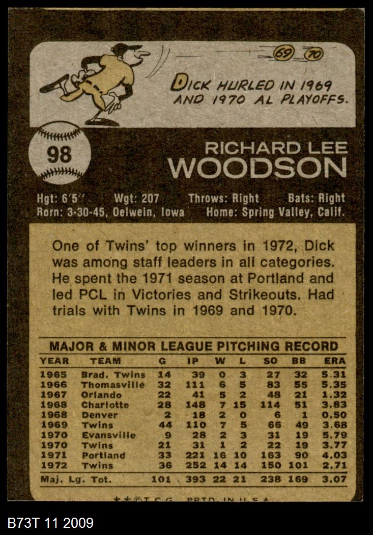 | 1973 Topps #98 Dick Woodson | 3 - VG | Front | Back |