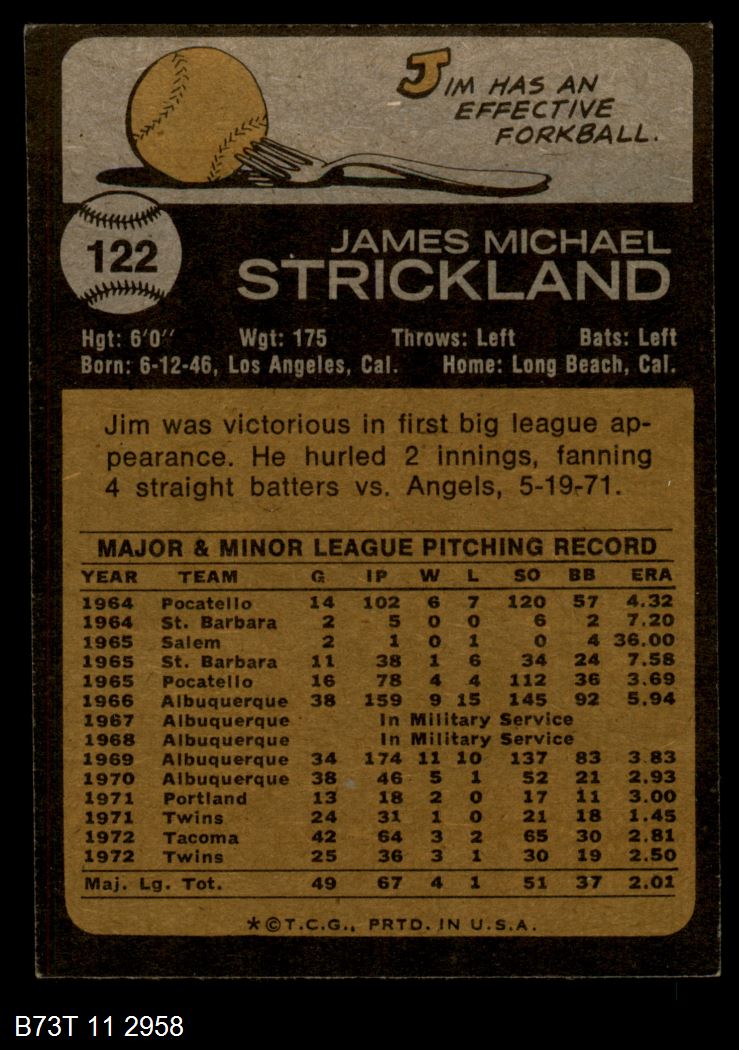 | 1973 Topps #122 Jim Strickland | 4 - VG/EX | Front | Back |