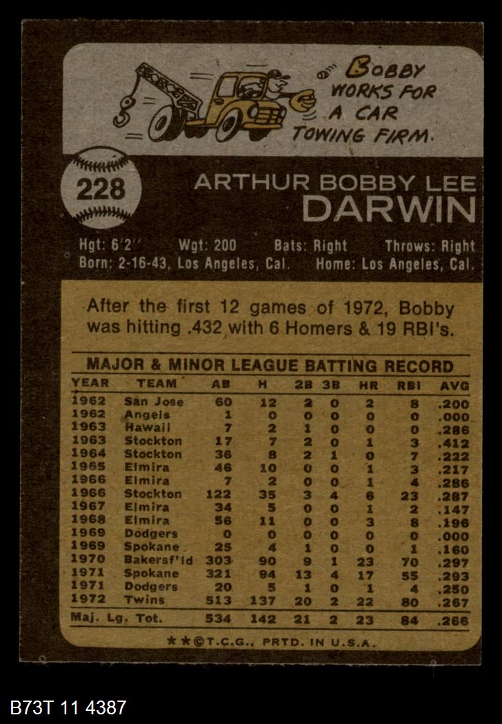 | 1973 Topps #228 Bobby Darwin | 3 - VG | Front | Back |