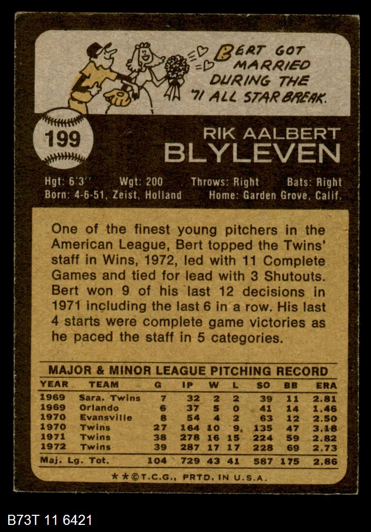 | 1973 Topps #199 Bert Blyleven | 3 - VG | Front | Back |