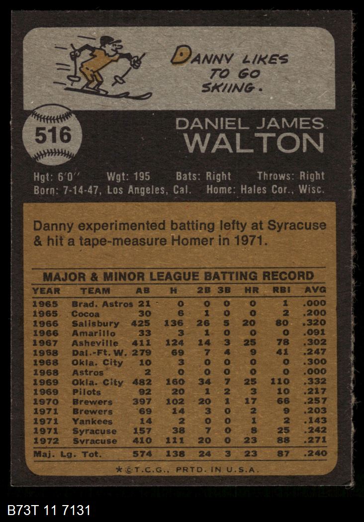 | 1973 Topps #516 Danny Walton | 3 - VG | Front | Back |
