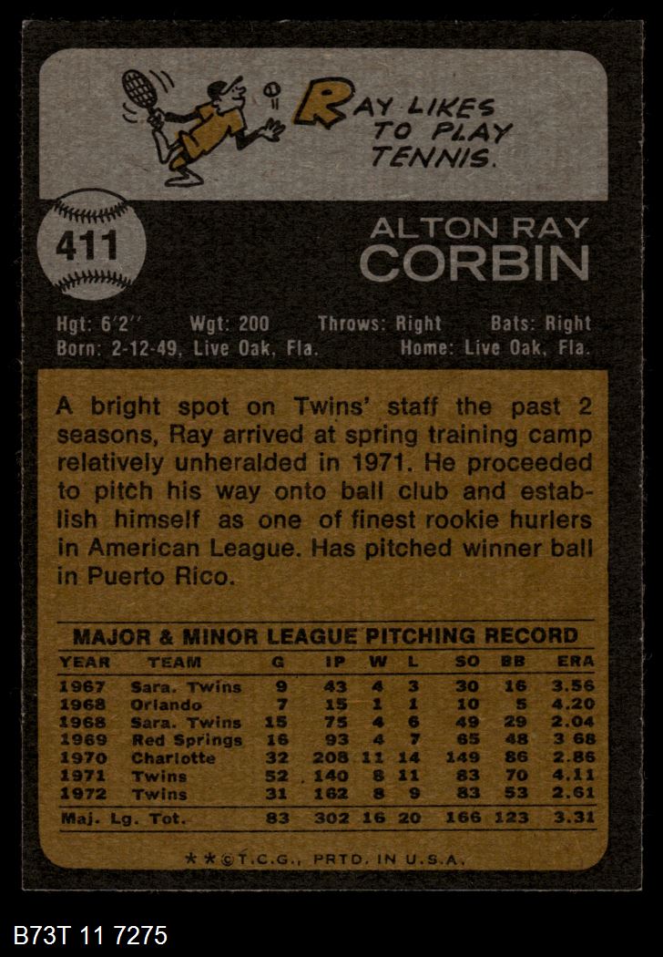 | 1973 Topps #411 Ray Corbin | 5 - EX | Front | Back |