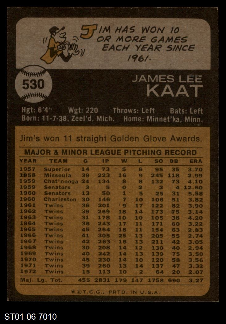 | 1973 Topps #530 Jim Kaat | 4 - VG/EX | Front | Back |