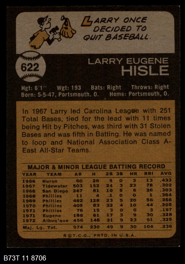 | 1973 Topps #622 Larry Hisle | 3 - VG | Front | Back |