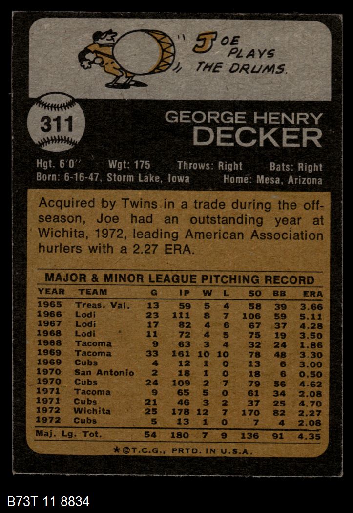| 1973 Topps #311 Joe Decker | 3 - VG | Front | Back |