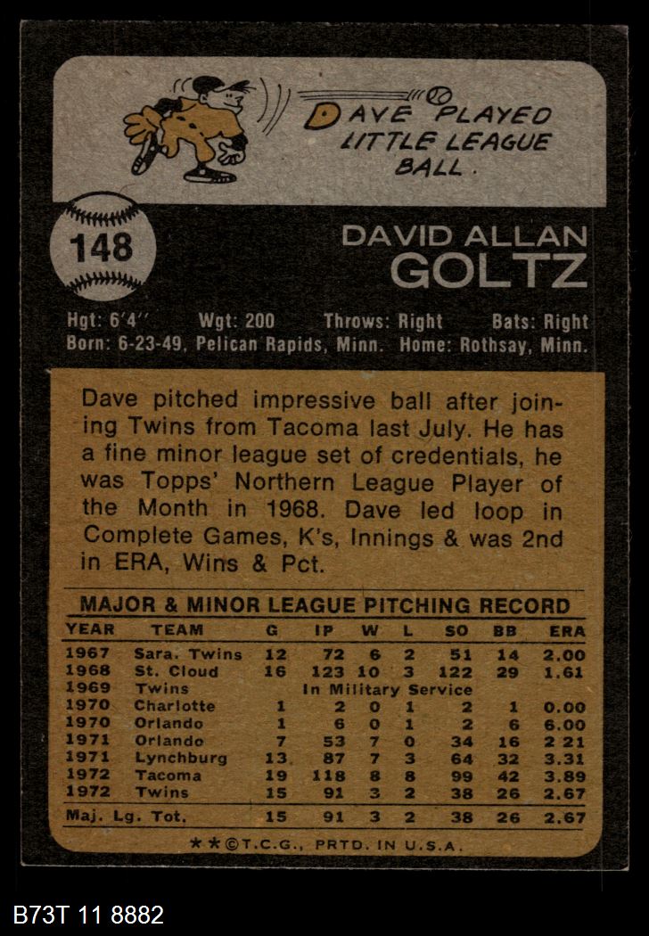 | 1973 Topps #148 Dave Goltz | 4 - VG/EX | Front | Back |