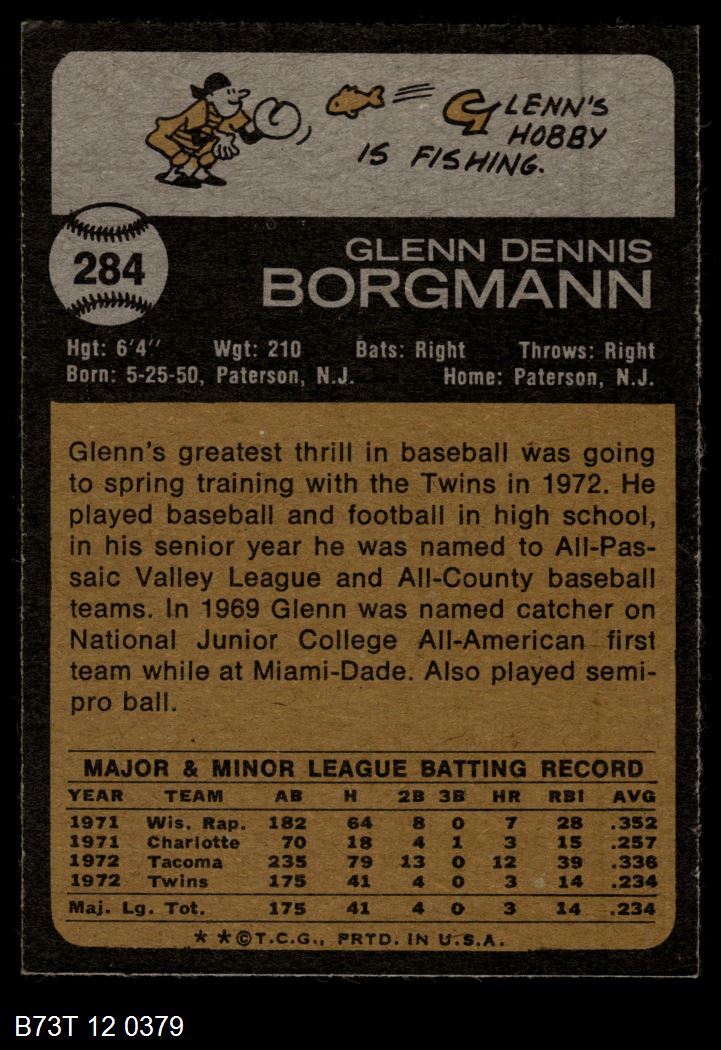 | 1973 Topps #284 Glenn Borgmann | 4 - VG/EX | Front | Back |