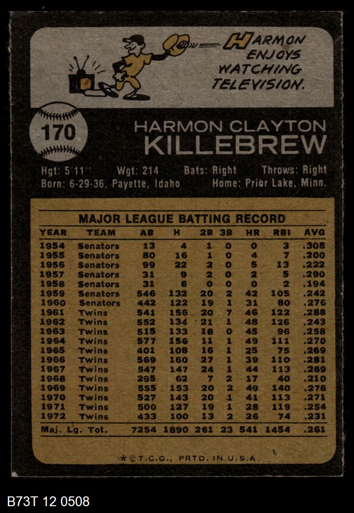 | 1973 Topps #170 Harmon Killebrew | 4 - VG/EX | Front | Back |