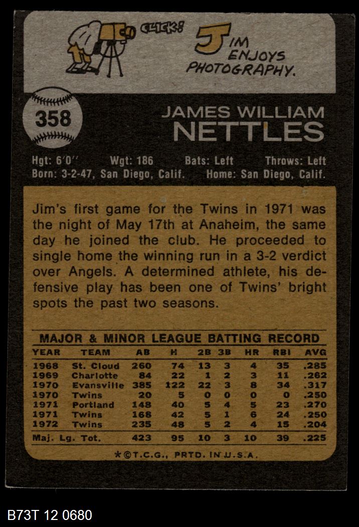 | 1973 Topps #358 Jim Nettles | 3 - VG | Front | Back |
