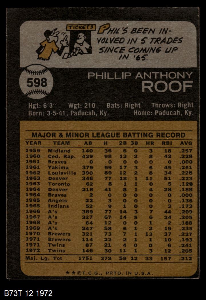 | 1973 Topps #598 Phil Roof | 3 - VG | Front | Back |